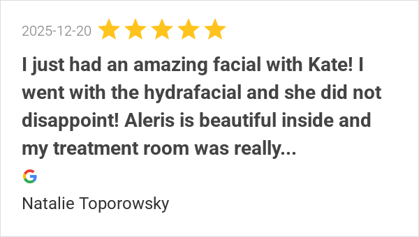 I would 100% recommend Aleris Aesthetics. The staff is amazi...