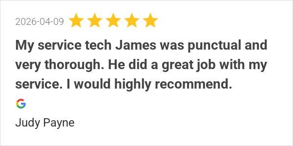 My service tech James was punctual and very thorough. He did...