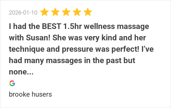 I had the BEST 1.5hr wellness massage with Susan! She was ve...