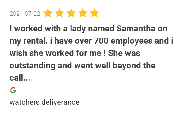 I worked with a lady named Samantha on my rental. i have ove...