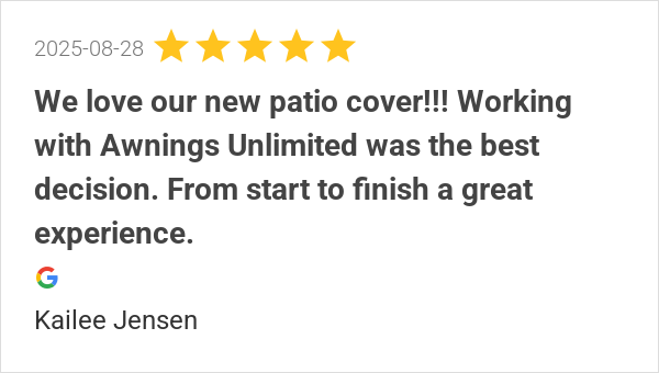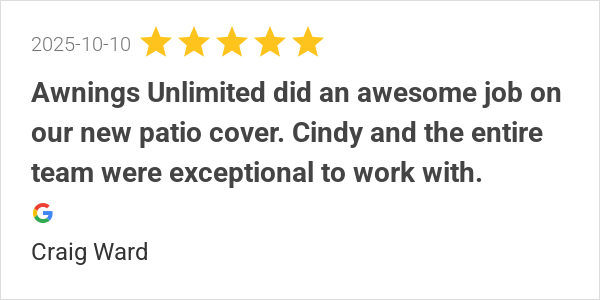 Awnings Unlimited did an awesome job on our new patio cover....