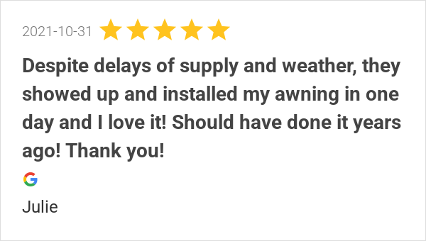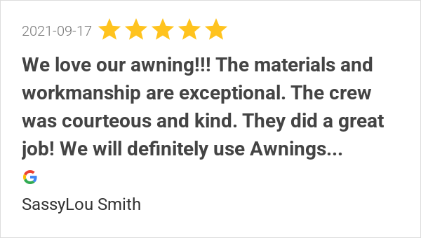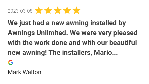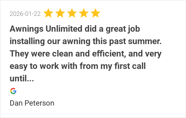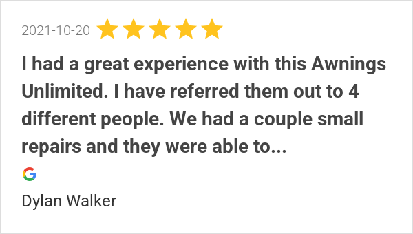 We had a great experience with Awnings Unlimited! Our awning...