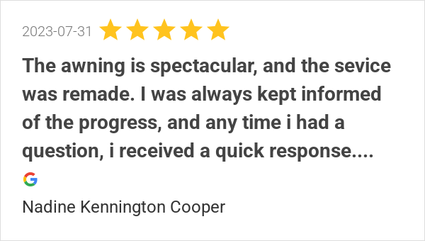 The awning is spectacular, and the sevice was remade. I was ...
