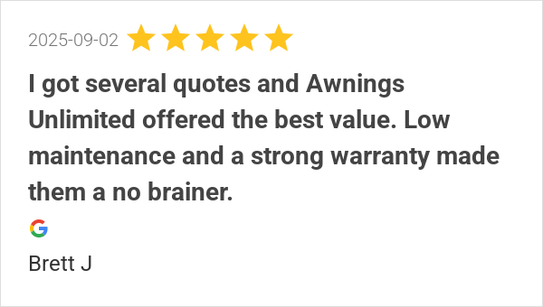 I got several quotes and Awnings Unlimited offered the best ...