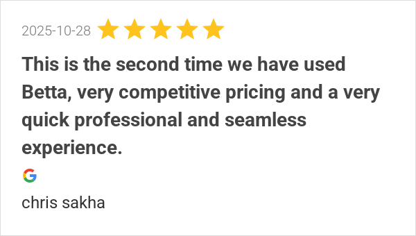 This is the second time we have used Betta, very competitive...