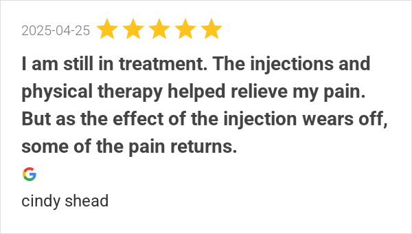The injections and physical therapy helped relieve my pain. ...