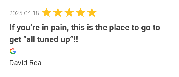 If you’re in pain, this is the place to go to get “all tuned...