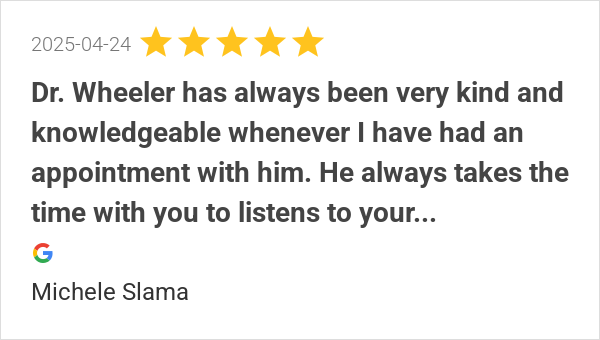 Dr. Wheeler has always been very kind and knowledgeable when...