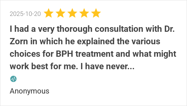 Dr. Zorn is a most exceptional urologist. He takes the to tr...