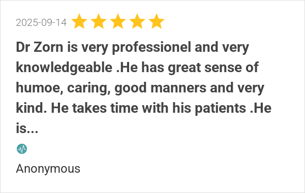 I would not hesitate to recommend Dr. Zorn to anyone who is ...