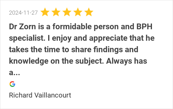 Dr Zorn is a formidable person and BPH specialist. Always ha...