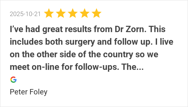 Very happy with Dr. Zorn. He is extremely knowledgeable, ver...