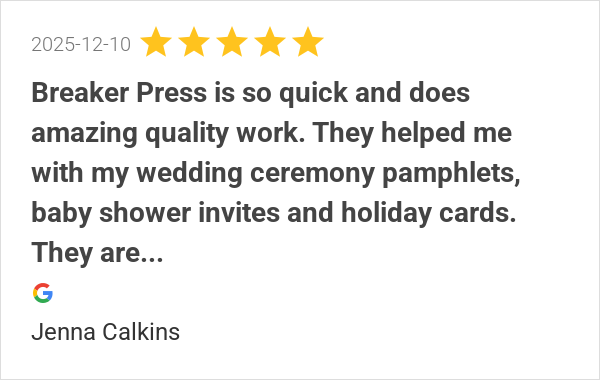 Breaker Press does EVERYTHING! They are accommodating to tim...