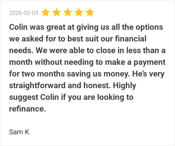 Colin and his staff were great through our whole refinance p...