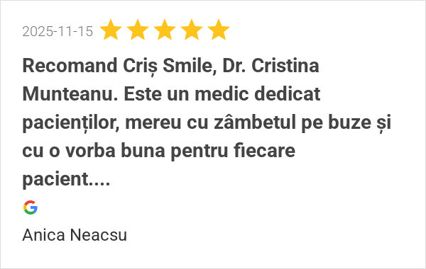 Recomand Criș Smile, Dr. Cristina Munteanu. Este un medic de...