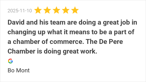 I love the De Pere Area Chamber of Commerce. I have gained s...