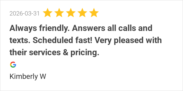 Always friendly. Answers all calls and texts. Scheduled fast...