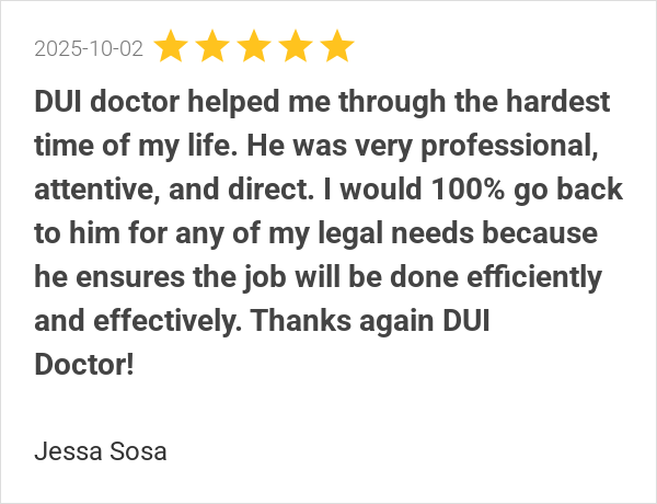 Needed a lawyer and made a great choice with The DUI Doctor....