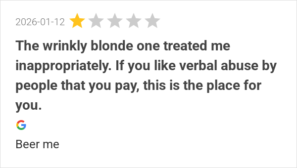 The wrinkly blonde one treated me inappropriately. If you li...