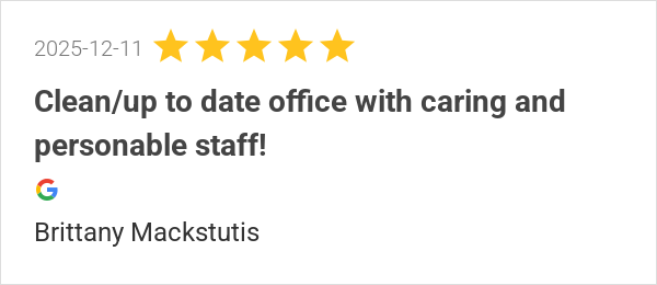 Clean/up to date office with caring and personable staff!