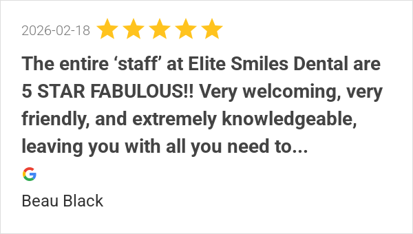 The entire ‘staff’ at EIite Smiles Dental are 5 STAR FABULOU...