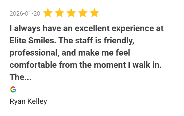 I always have an excellent experience at Elite Smiles. Highl...
