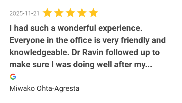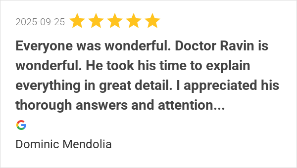 Dr Ravin and his staff were wonderful. I had a very good exp...