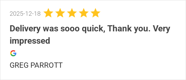 Delivery was sooo quick, Thank you. Very impressed