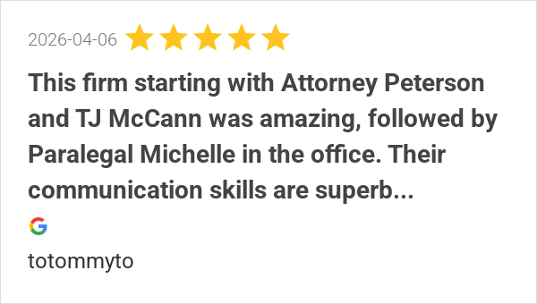 This firm starting with Attorney Peterson and TJ McCann was ...
