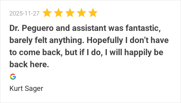 Dr. Peguero and assistant was fantastic, barely felt anythin...