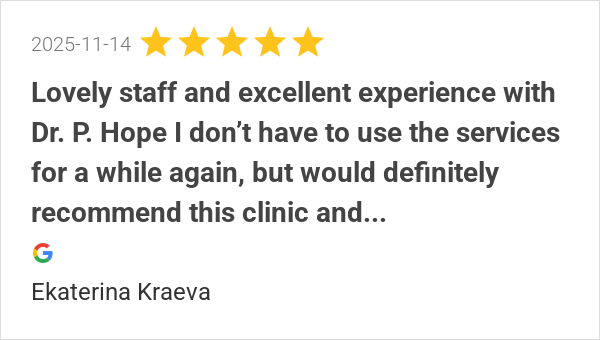 Lovely staff and excellent experience with Dr. P. Hope I don...