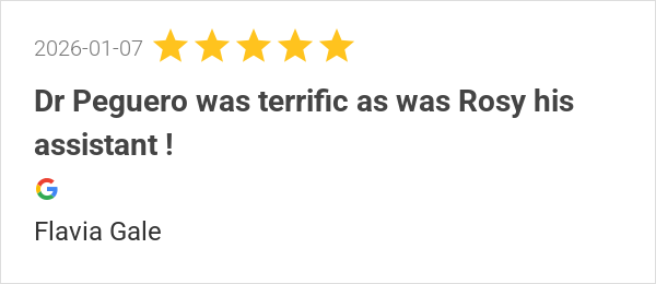 So pleased with the excellent care I received from Dr Peguer...