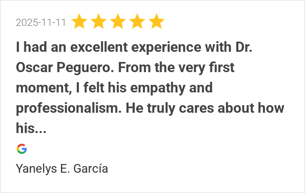 I had an excellent experience with Dr. Oscar Peguero. From t...