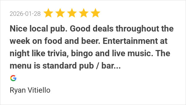 Nice local pub. Good deals throughout the week on food and b...