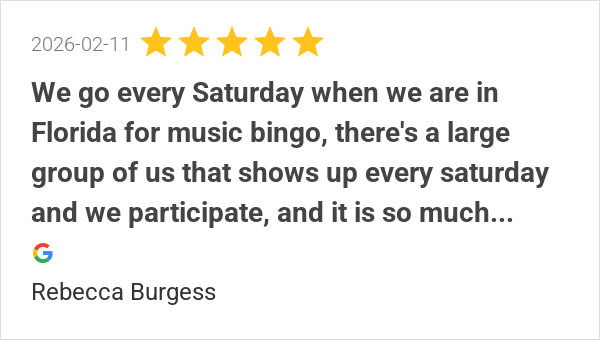 We go every Saturday when we are in Florida for music bingo,...