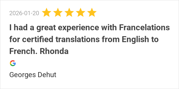 I had a great experience with Francelations for certified tr...