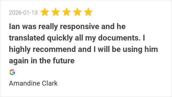 J’ai fait appel à Ian pour la traduction officielle de mes d...