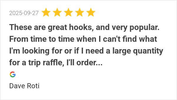 Great hooks and great service. Shipped quickly