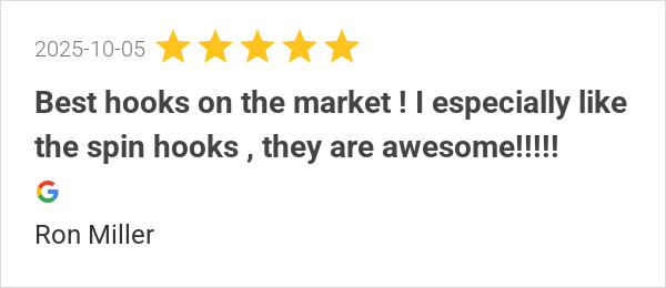 Best hooks on the market ! I especially like the spin hooks ...
