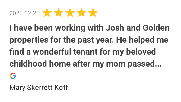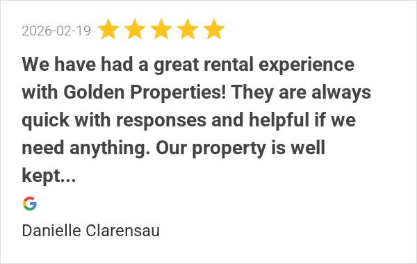 We have had a great rental experience with Golden Properties...