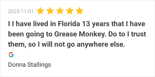 I always go to Grease Monkey and when I had to go to NJ for ...