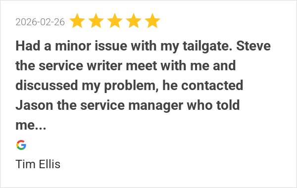 Had a minor issue with my tailgate. Steve the service writer...