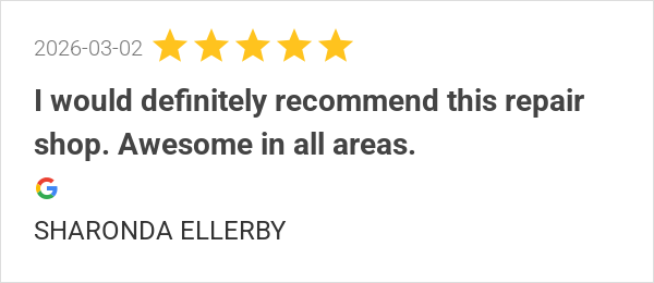 I would definitely recommend this repair shop. Awesome in al...
