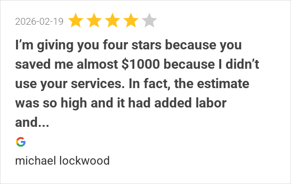 I’m giving you four stars because you saved me almost $1000 ...