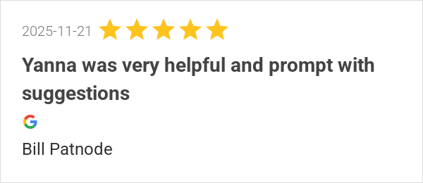 Yanna was very helpful and prompt with suggestions