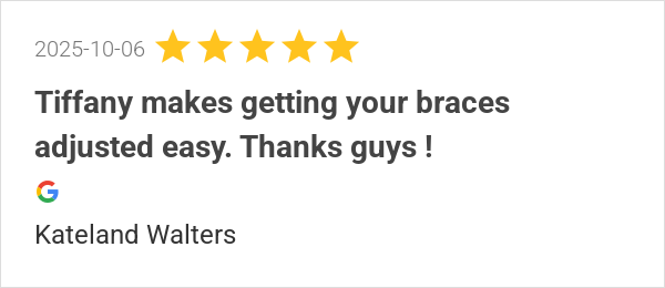 Tiffany makes getting your braces adjusted easy. Thanks guys...