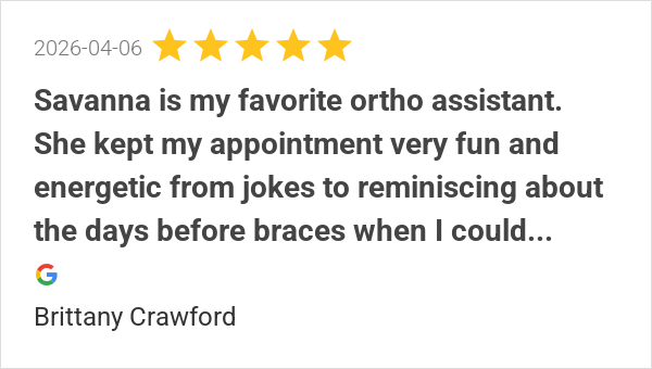Thanks for the incredible ortho care and patient quality! Yo...