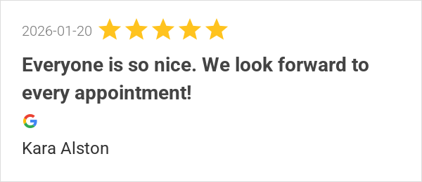 Everyone is so nice. We look forward to every appointment!