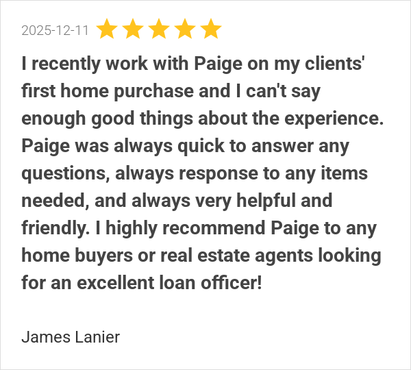 Paige was an amazing Mortgage broker! I highly recommend her...