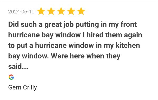 We are extremely satisfied with our hurricane windows. They ...